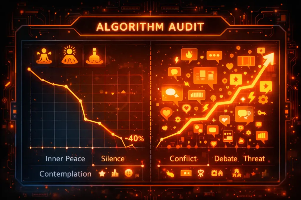 This audit revealed that the architecture of social media is, by definition, anti-spiritual. While religious tradition requires time and deceleration, the Divine Algorithm demands speed and reactivity. If a 15-second video doesn’t capture your attention in the first 2 seconds, it vanishes. This forces the sacred to become a spectacle of entertainment, changing how the brain processes connection with the divine.
